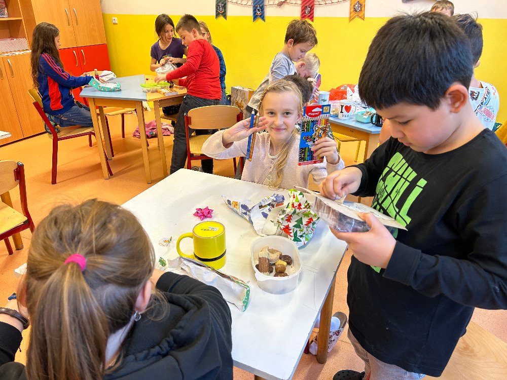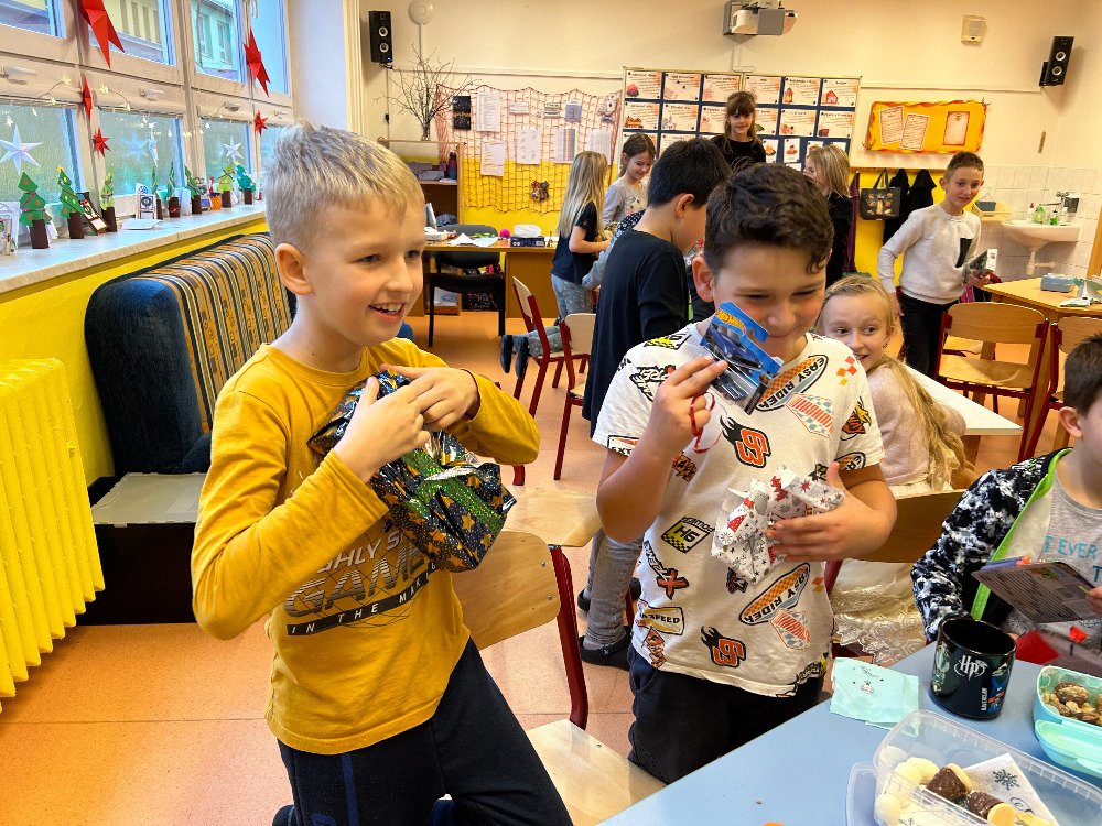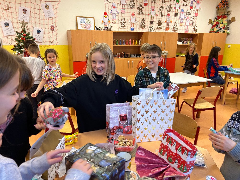 V prosinci jsme se s dětmi v družině věnovali přípravám na Vánoce. Vyzdobili jsme družinu, ozdobili stromeček a společně si užívali předvánoční čas. Vyráběli jsme vánoční dekorace a obrázky, luštili kvízy. Dále jsme si připomněli vánoční tradice a zvyky, které se dodržují u nás a ve světě. Dne 21. 12. se uskutečnila vánoční besídka. Pod stromečkem na děti čekaly dárečky, které si navzájem přinesly. Po družině se rozléhal smích a nadšení z dárků. Po rozbalení dárečků jsme si pochutnali na cukroví, přiťukli si čajem a zazpívali si koledy.