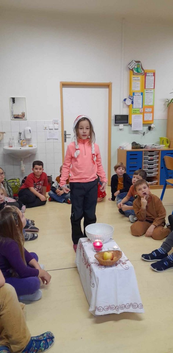 VÁNOČNÍ BESÍDKA U SOVIČEK proběhla 21.12.Děti si užily nabitý program,běhací šifrovačku,vánoční hádanky,zpěv a poslech koled,vánoční literární pásmo.Také si vyzkoušely štědrovečerní zvyky a poslechly si pohádku O vánocích,které nechtěly být....Záhrály si vánoční bingo a vyrobily si vánoční záložku.Nakonec na děti čekal malý dáreček,který charakterizuje naši družinku a bude jim ji připomínat.Radostné vánoce všem lidem dobré vůle!.