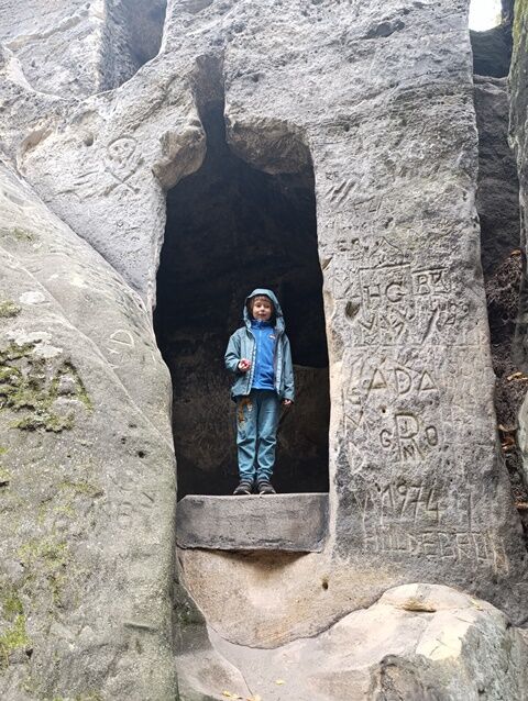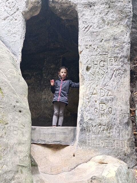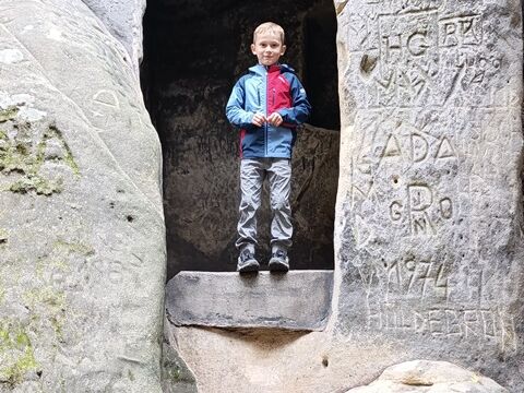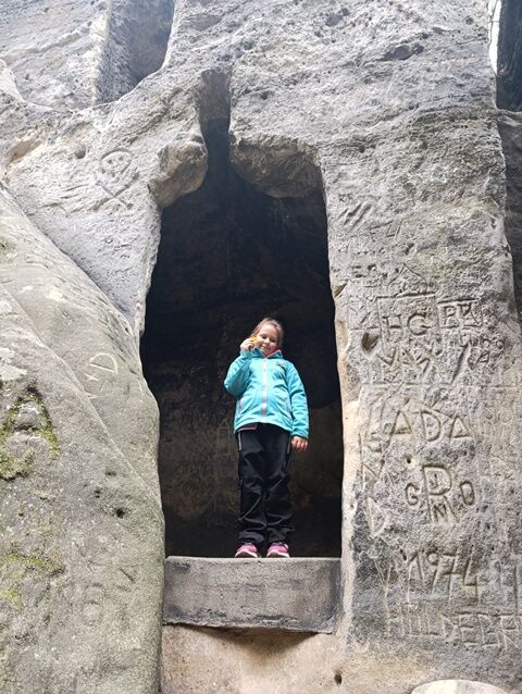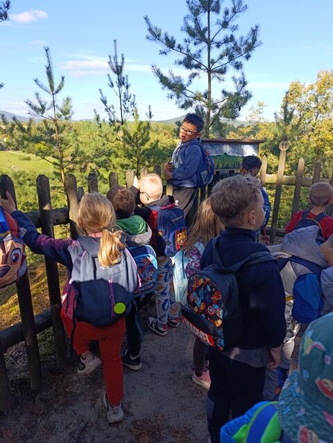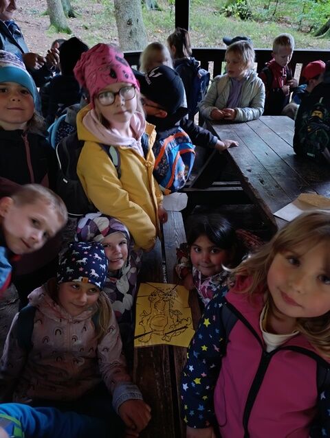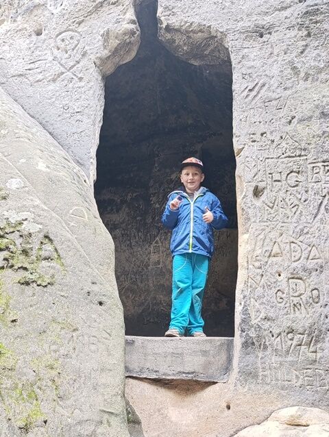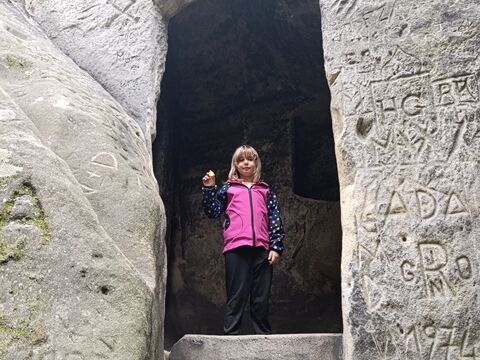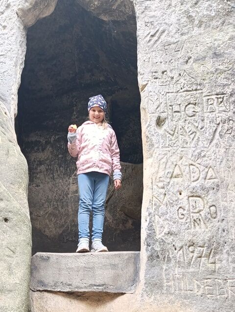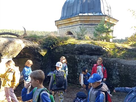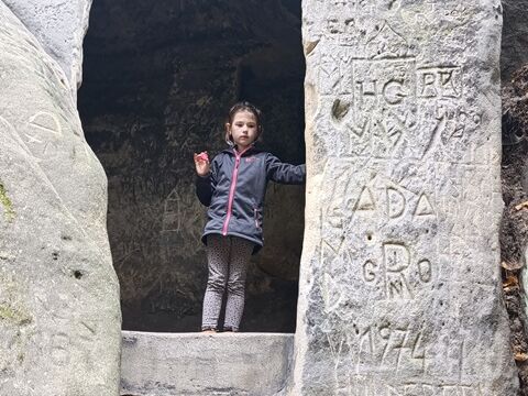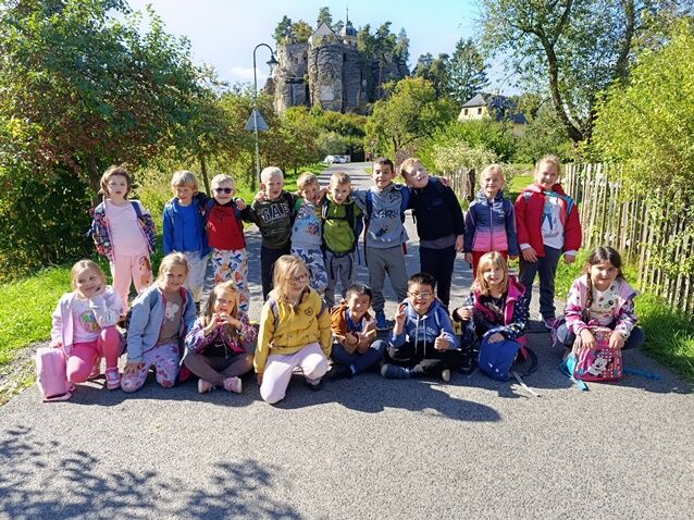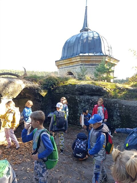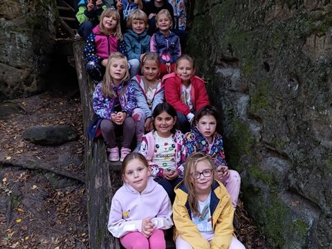 Zažili jsme toho spoustu – v Samuelově jeskyni jsme hledali korálky od princezny, skládali jsme puzzle draka, který princeznu unesl, byli jsme na výletě na skalním hradě, kde to bylo moc pěkné a zajímavé, ve skalním divadle jsme si zahráli pohádku „Domeček“, měli jsme večerní stezku odvahy, kterou jsme všichni statečně zvládli a našli poklad, soutěžili jsme ve sportovních disciplínách ( skákání v pytli, přetahování lanem, štafetový skok,…, ale i v tvorbě (výroba papírových draků) a také jsme se trochu učili. Mnoho z nás si vyzkoušelo, jaké to je, být téměř 3 dny a 2 noci bez maminky. Všichni jsme byli stateční a zvládli jsme to téměř bez slziček.