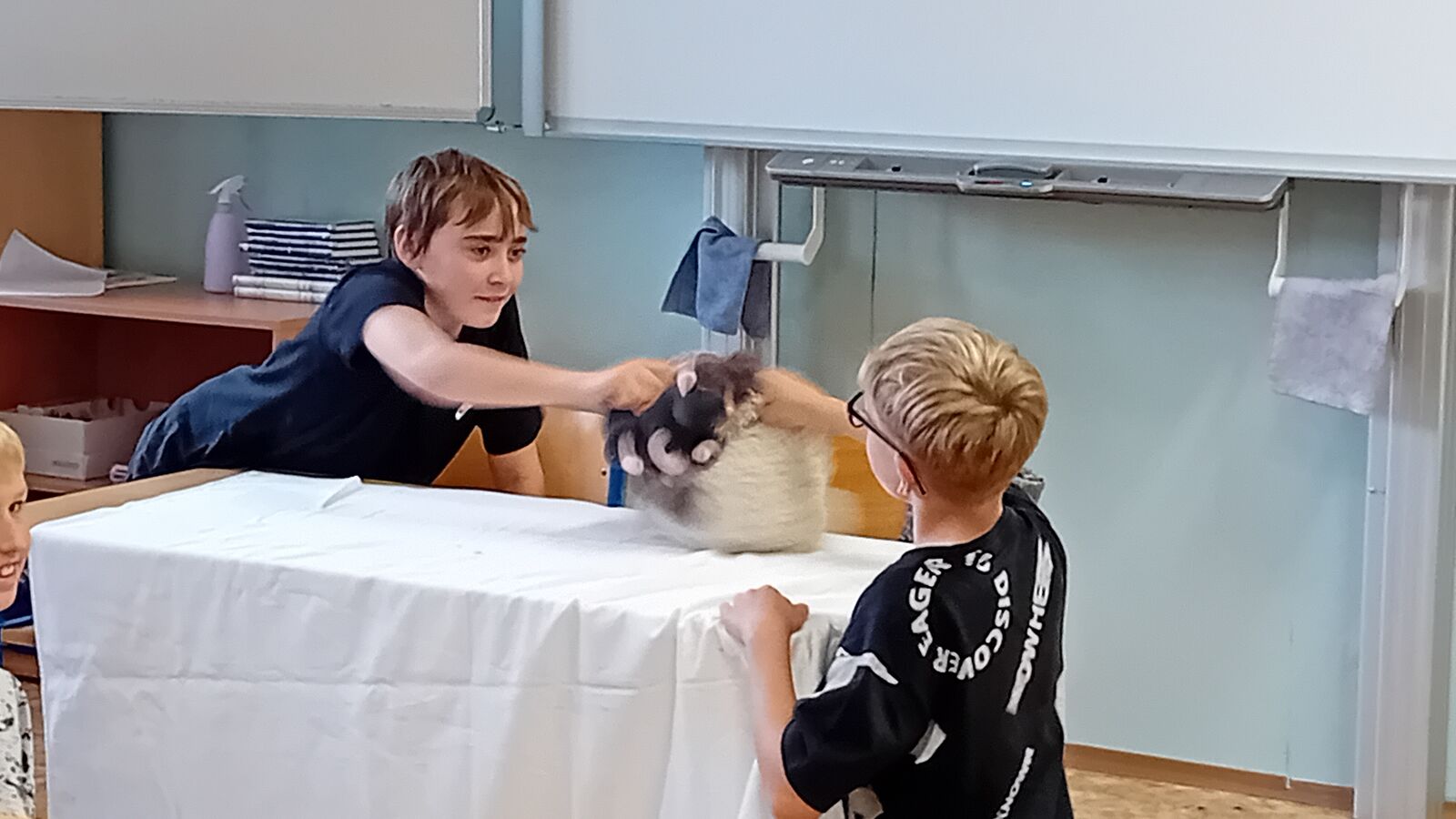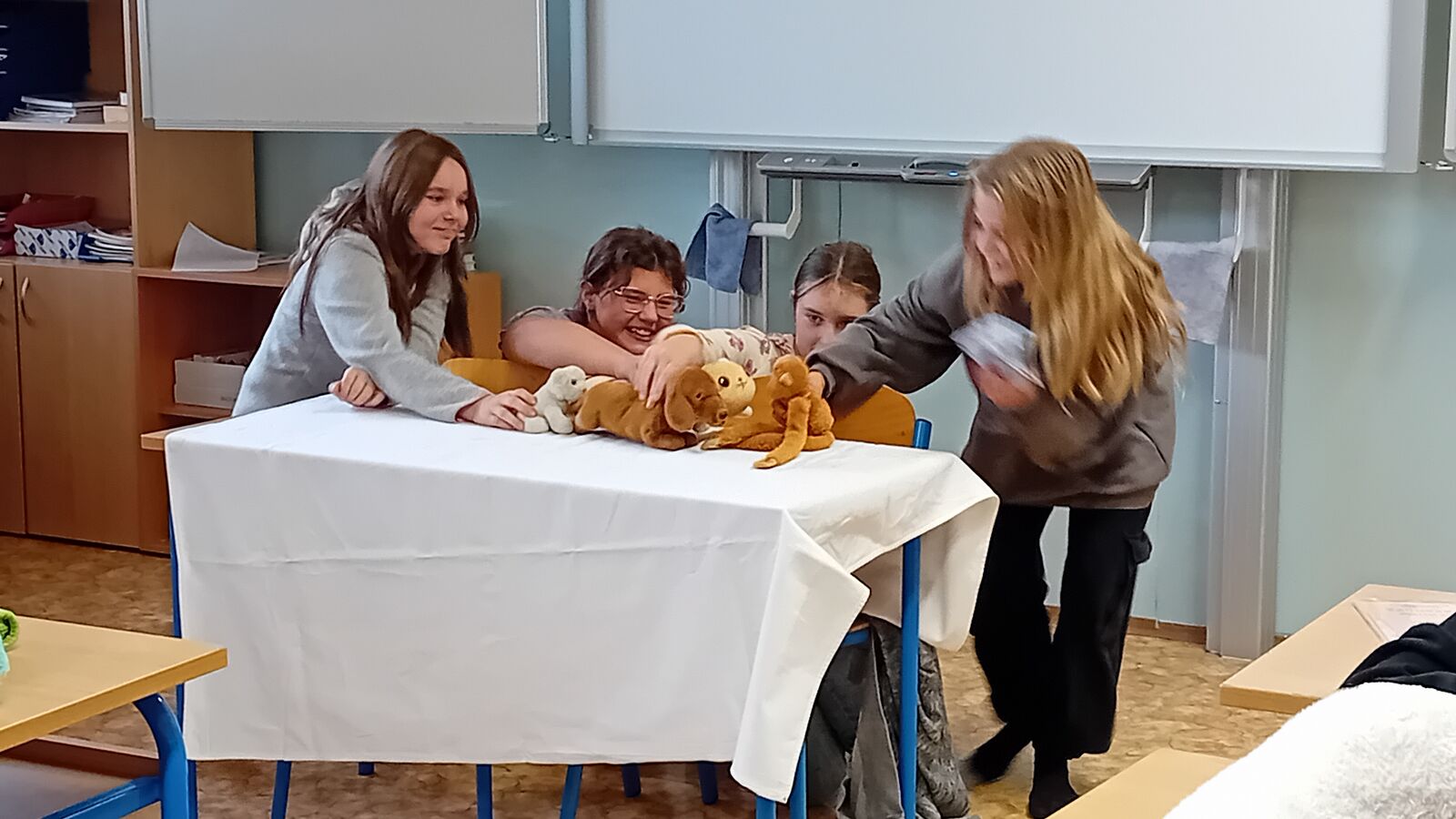 Na závěr učiva v literatuře - pohádka - si žáci ve skupinách připravili dramatizaci pohádky s plyšáky.