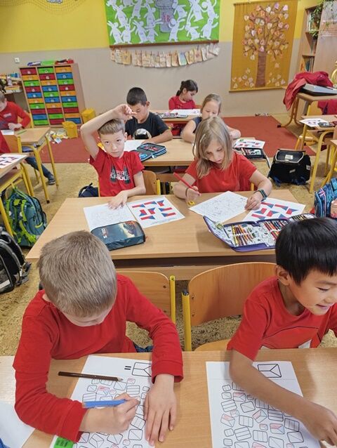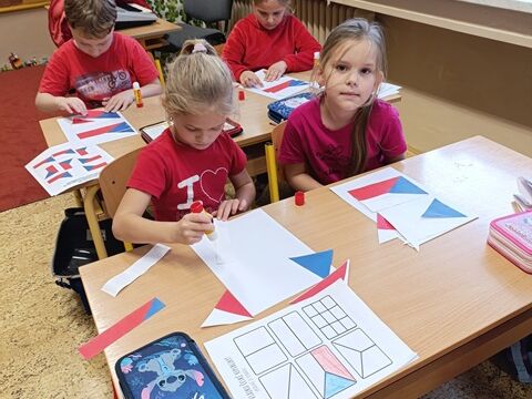 V 1. třídě jsme se zaměřili především na naši státní vlajku. Seznámili jsme se i s dalšími státními symboly. Řekli jsme si, jak naše republika vznikla a poznali osobnost našeho prvního prezidenta T. G. Masaryka. Také jsme plnili různé úkoly týkající se naší vlajky. Poslechli jsme si naši státní hymnu a naučili se při ní správně chovat.